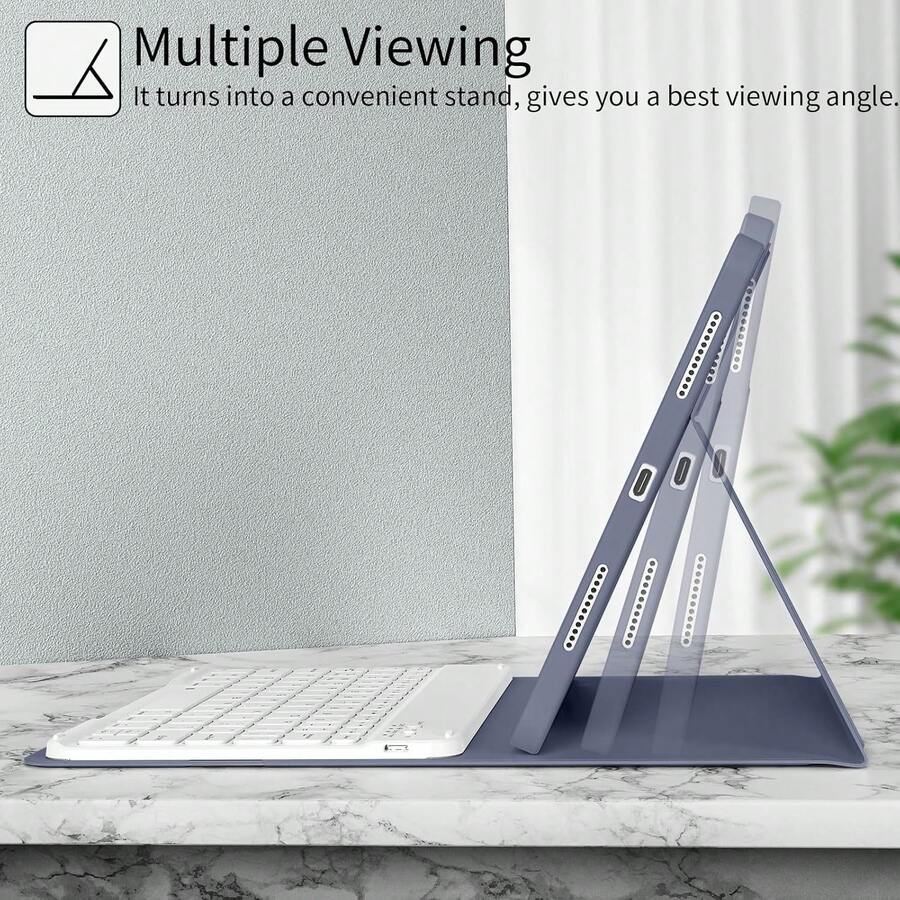 TenYide 适用于 iPad/MatePad/荣耀平板/iPad/Tab/GalaxyTab 的键盘保护套,超薄蓝牙键盘 + 平板电脑保护套 - 双合一,柔软 TPU 后盖