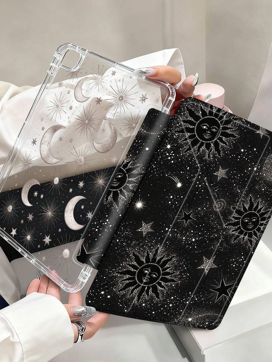 这款日月星辰图案平板电脑保护套兼容 MacBook Air 11 英寸 M3 2025 / M2 2024、第五代 MacBook Air 2022、(A16) 11 英寸第十一代 2025,也兼容三星 Galaxy Tab 和 Kindle Paperwhite 第十二代 2024。透明背壳,时尚图案保护套,支持自动睡眠/唤醒功能,配备气囊保护,适合作为礼物或办公用品。