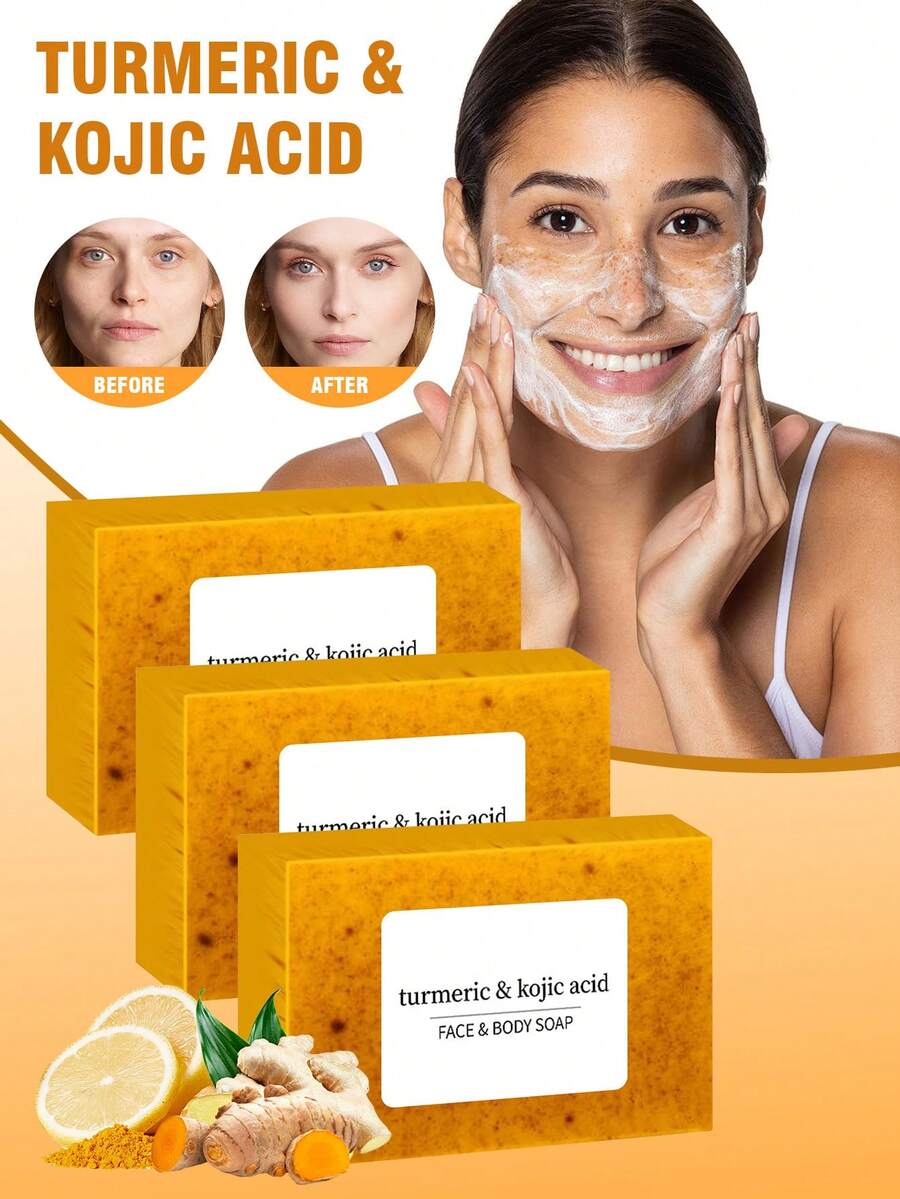 姜黄和水杨酸,柠檬姜黄和水杨酸亮肤皂,天然有机姜黄面部和身体清洁皂,适用于面部和身体,深层清洁并柔滑肌肤。