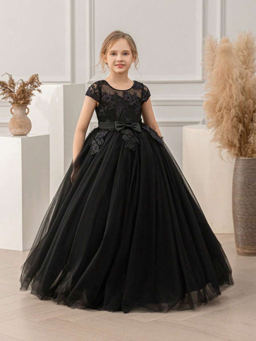 优雅少女派对圣诞酒红色连衣裙,饰有刺绣蝴蝶结和薄纱,公主裙,适合女孩生日派对、宴会、晚宴、花童、伴娘、婚礼、感恩节、毕业典礼等场合。