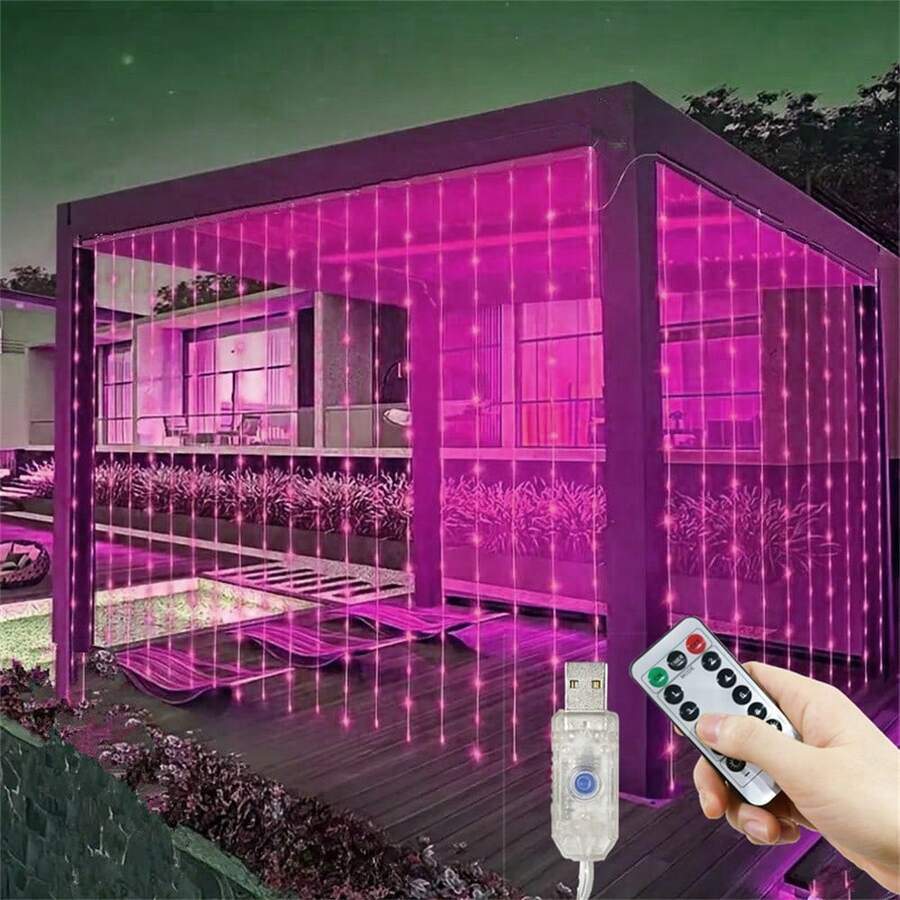 USB供电LED窗帘灯串,8种模式,带遥控器,适用于派对、家居、卧室、厨房、花园、婚礼、斋月、情人节、生日、露营、背景装饰、户外等场合的装饰灯。