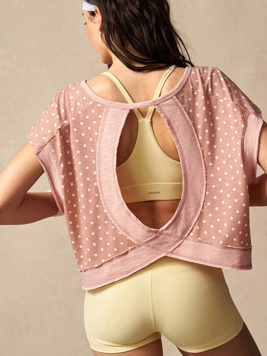 VARSIVA 女士波点印花圆领露背蝙蝠袖运动T恤