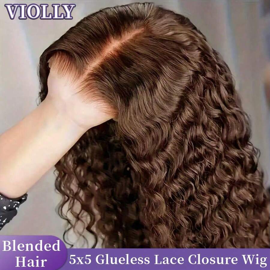 VIOLLY 200% 密度 5x5 无胶蕾丝闭合假发 预切蕾丝黑色长深波浪巴西真人发编织人发混合假发 舒适适合日常佩戴和特殊场合 戴上即走 假发无缝自然外观 适合初学者