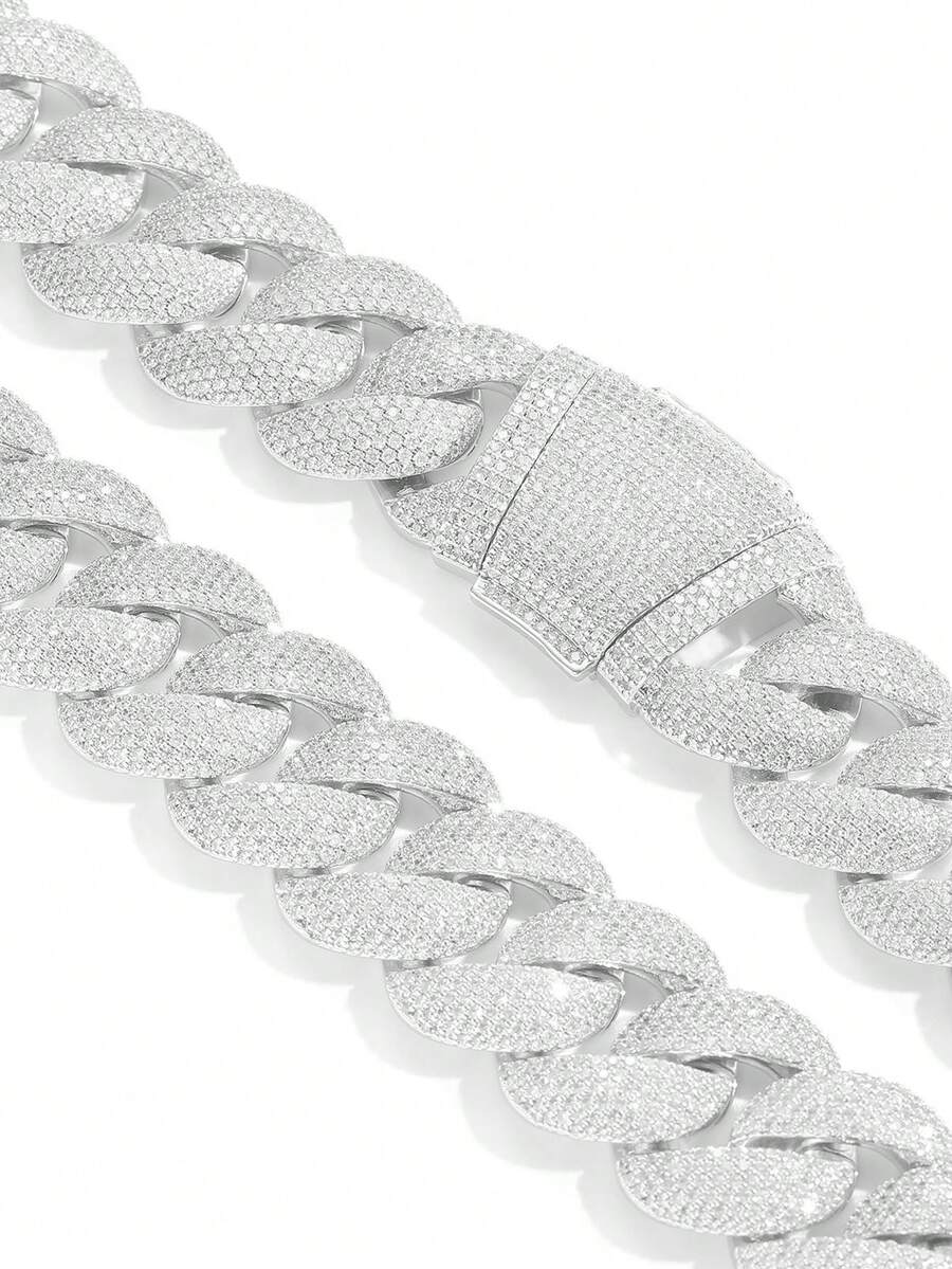 VJS 1条22毫米宽嘻哈街头风个性化全锆石迈阿密链,黄铜材质男士项链,休闲个性化配饰