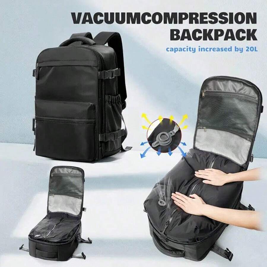 真空压缩背包 - 尼龙材质,多口袋收纳,适合旅行、徒步、露营和商务出行,节省空间设计,内置气泵,旅行必备收纳包,轻便旅行装备,拉链封口,旅行背包,旅行包,行李袋,旅行袋,过夜包,大容量旅行收纳包,邮轮必备,度假必备,男女通用