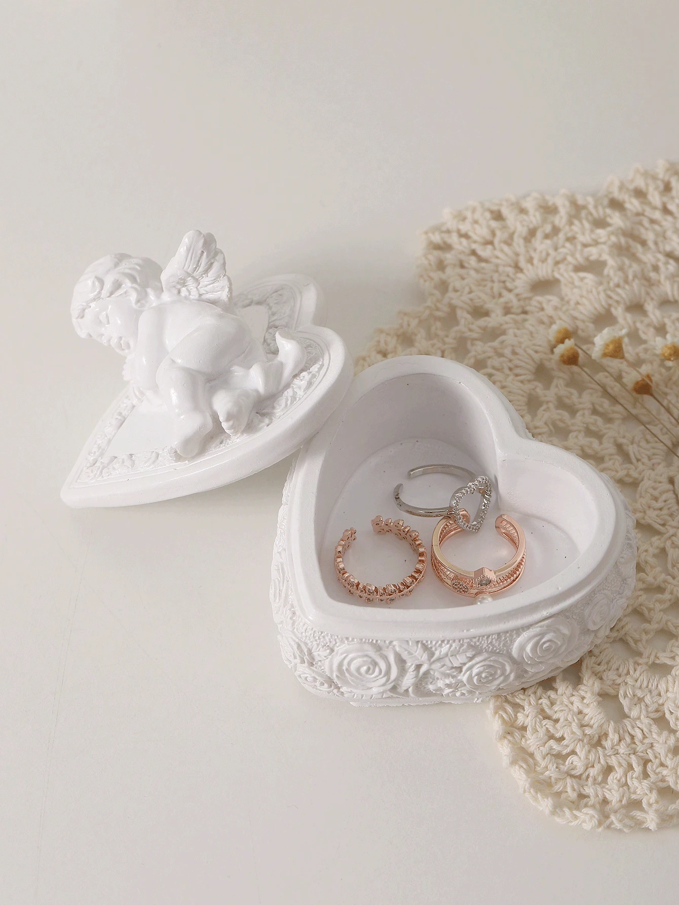 复古雕花白色树脂迷你首饰盒,天使造型饰品盒,适合收纳珠宝、戒指、耳环,可用作首饰架、婚礼糖果盒,是情人节、生日的理想礼物