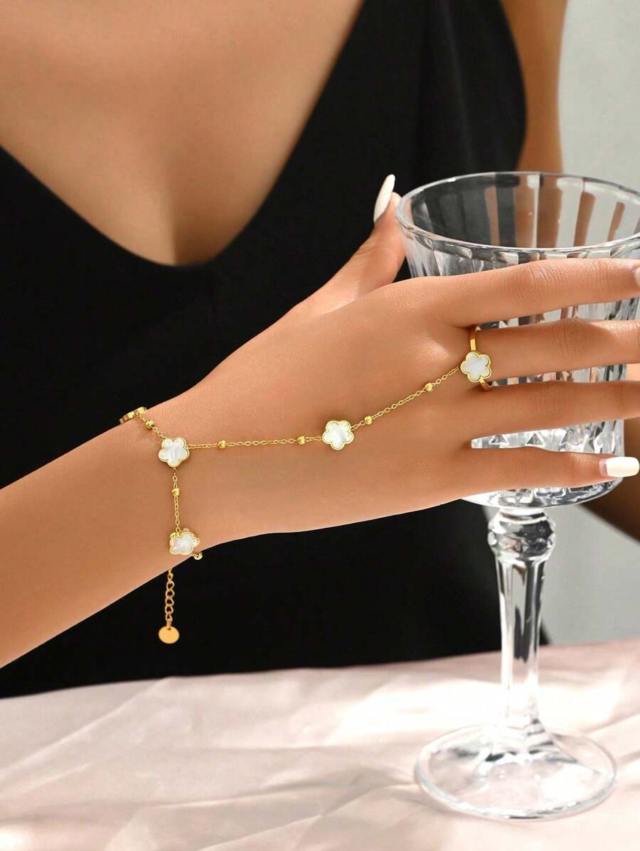 1 件 18K 镀金复古个性化百搭经典通勤时尚度假花卉设计手指连接后手链女士