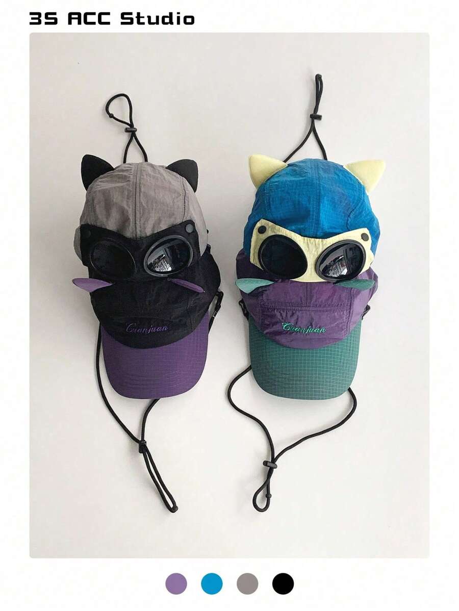 1 件软顶飞行员太阳镜帽,时尚复古拼色速干棒球帽,带可爱猫耳,适合女士,男女通用速干飞行员太阳镜帽,带可爱猫耳,可调节反戴棒球帽,适合男士
