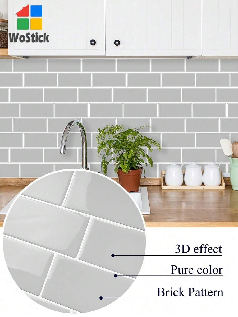 WoStick 防水砖纹3D墙板DIY瓷砖,可移除自粘墙砖贴纸,适用于厨房浴室防溅板,可用于节日装饰、贴纸、墙贴、乙烯基壁纸、家居装饰、春季装饰、家居翻新、Rama装饰贴纸、生日毕业礼物