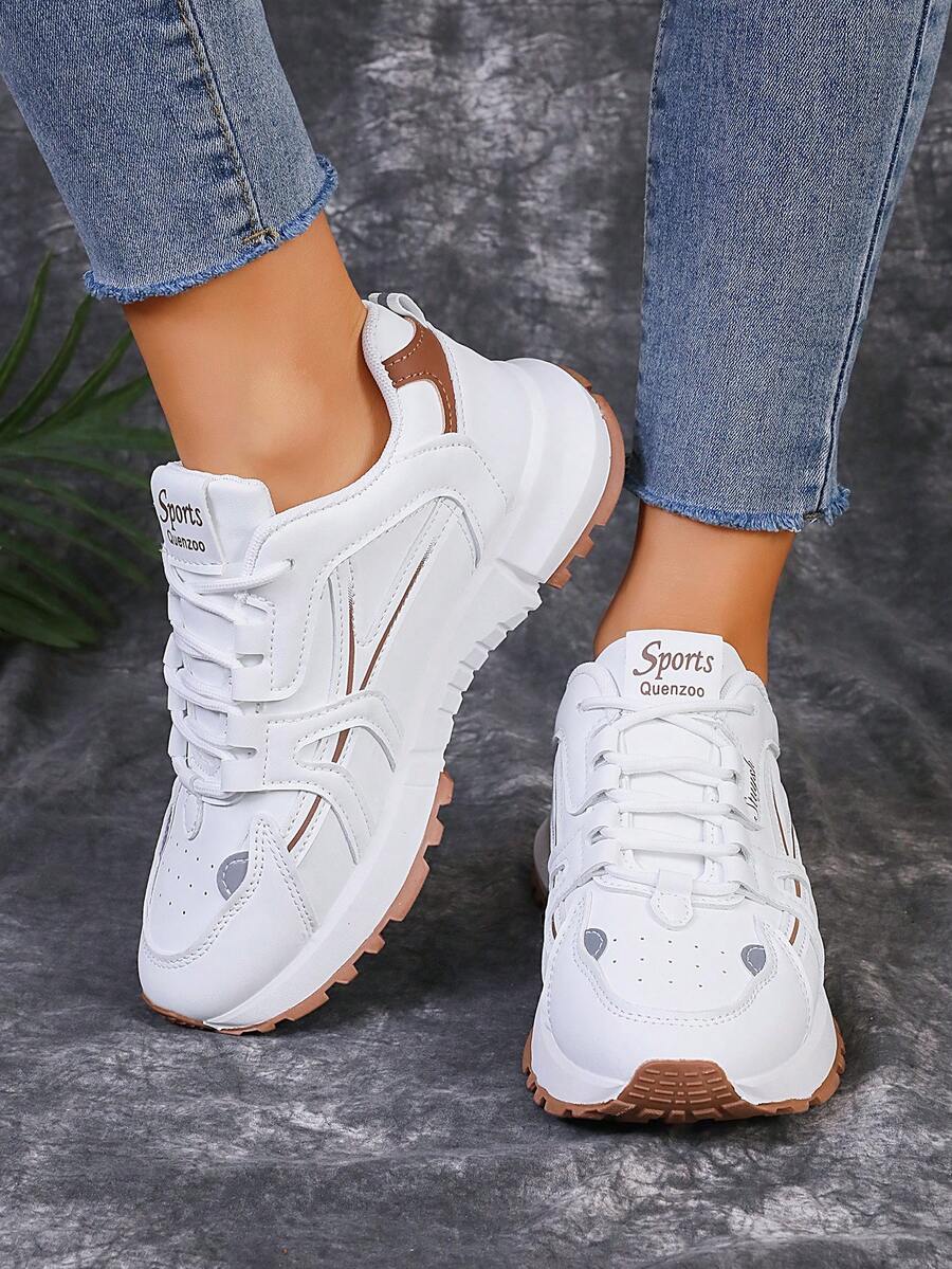 女士輕便休閒Ins風運動厚底深口運動鞋,前綁帶設計