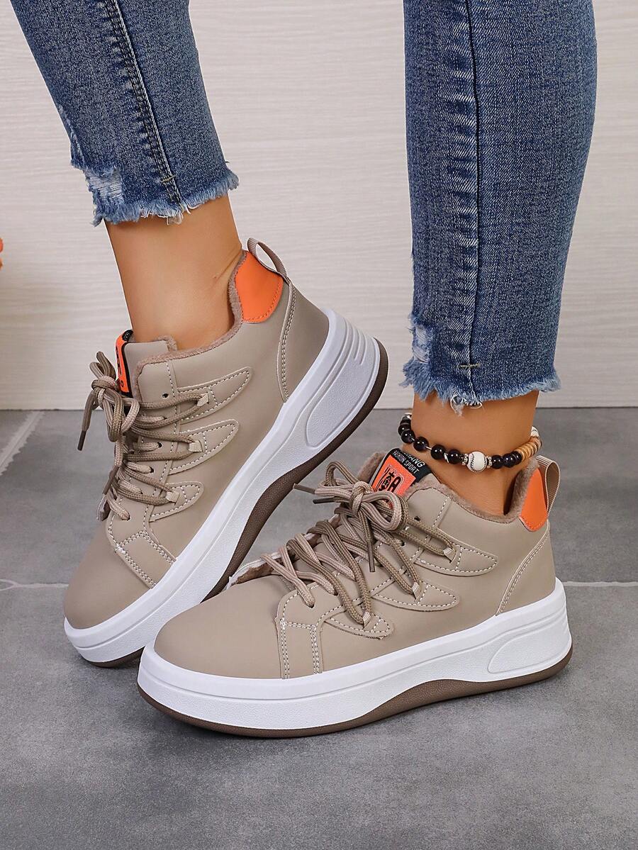 女士戶外休閒鞋,春/秋,時尚交叉纏繞高筒保暖鞋