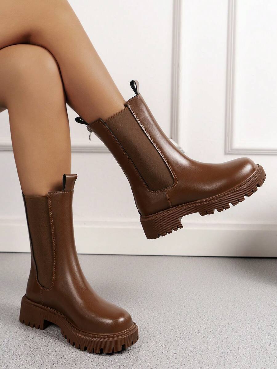 女士春秋靴厚底切尔西靴中筒烟囱靴女款