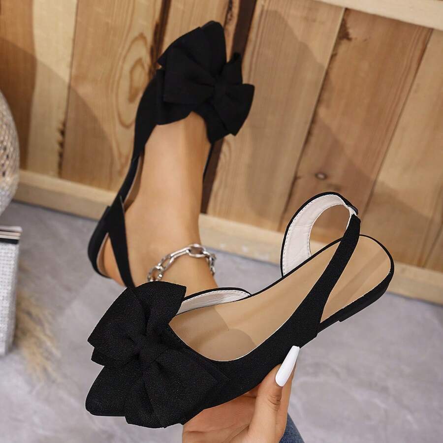 女士时尚可爱蝴蝶结装饰可调节平底尖头凉鞋
