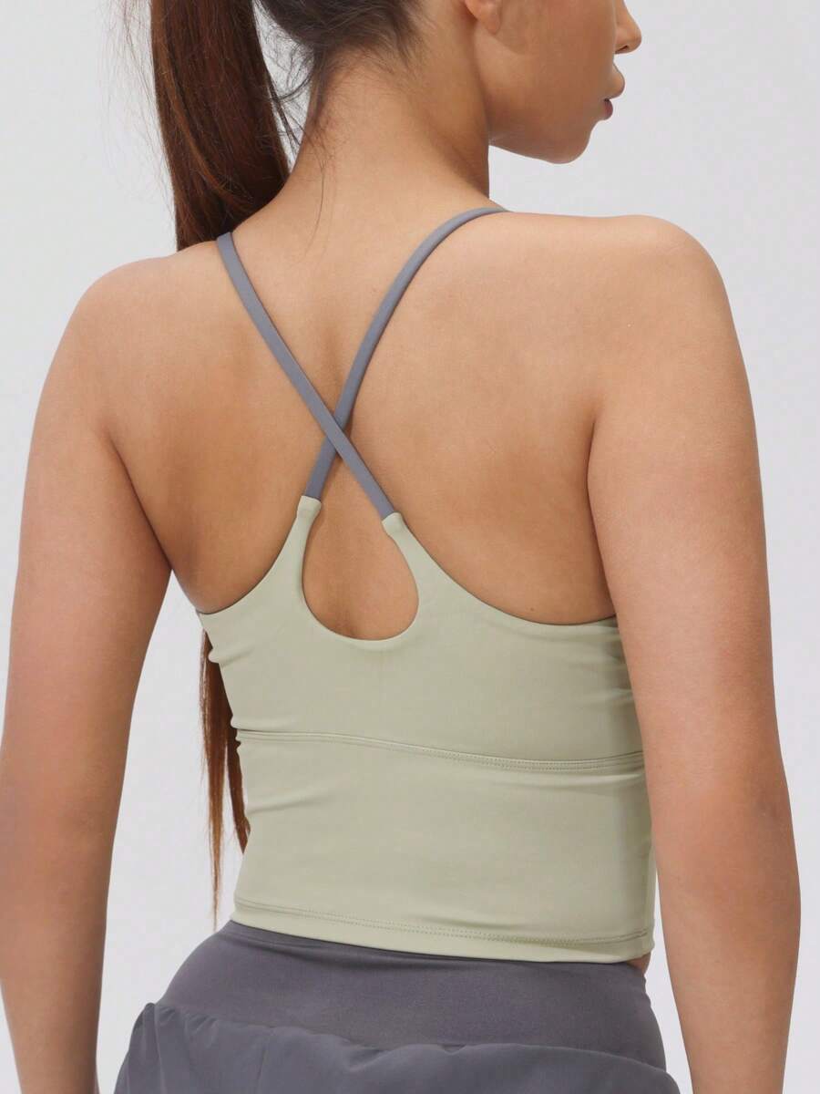 女士固定衬垫运动工字背心拼接弹力瑜伽背心