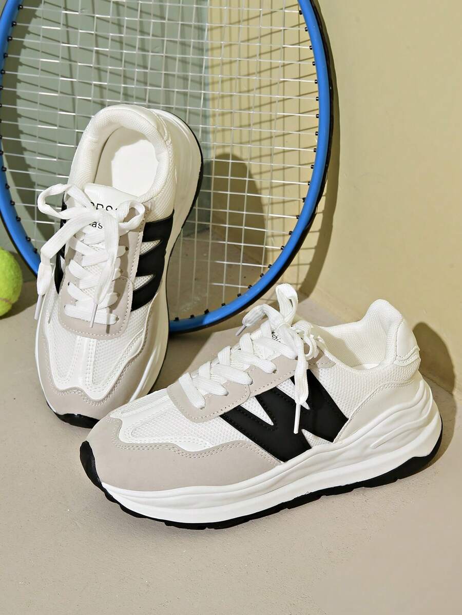 女士圆头时尚系带厚底学生休闲舒适跑步运动鞋