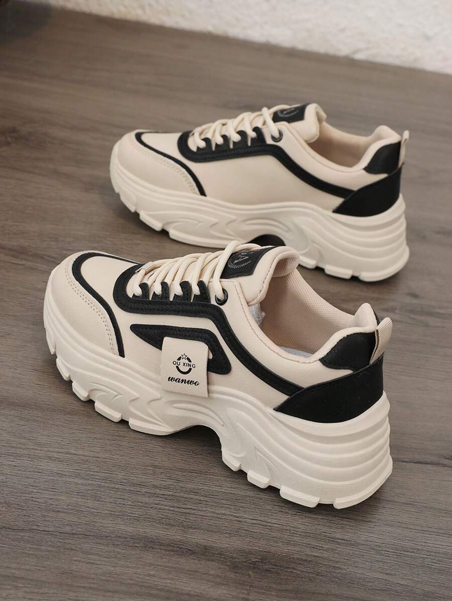女士厚底运动鞋,2025新款秋季轻便厚底运动鞋,适合春秋运动风格,女士系带小白鞋