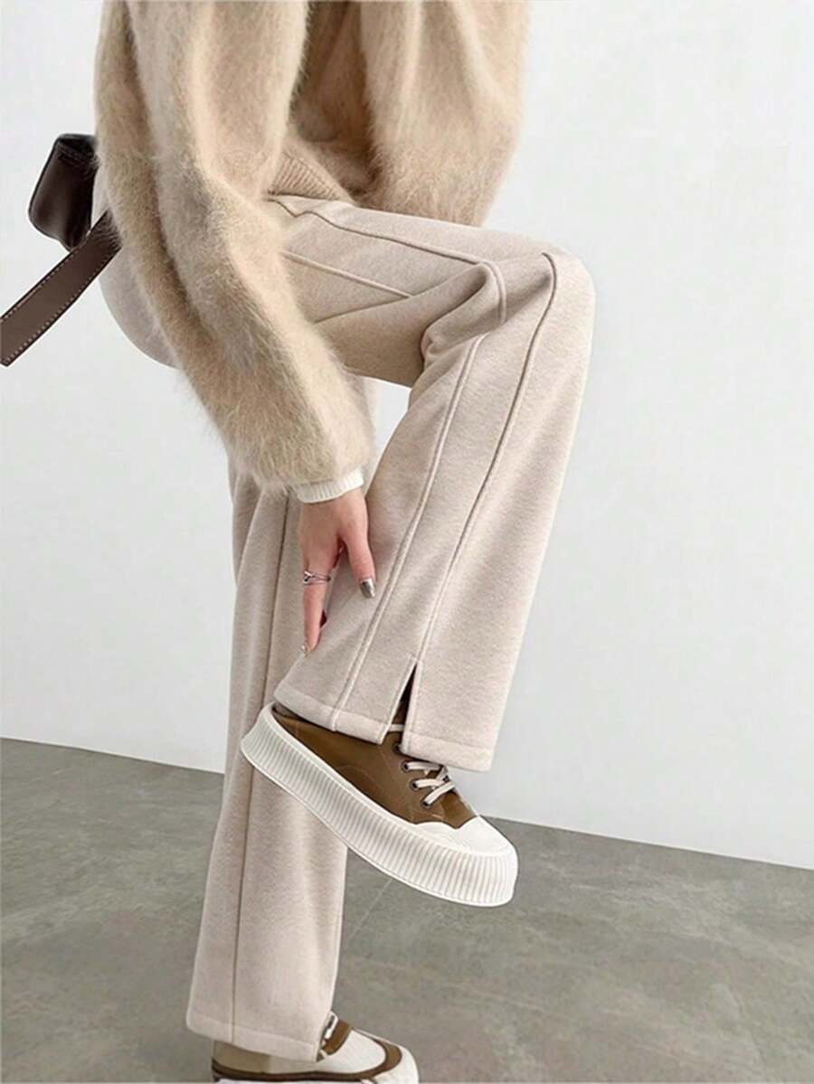 • 女士V字开衩阔腿裤,休闲百搭直筒裤,适合春夏穿着 - 香檳色 - 查看 6