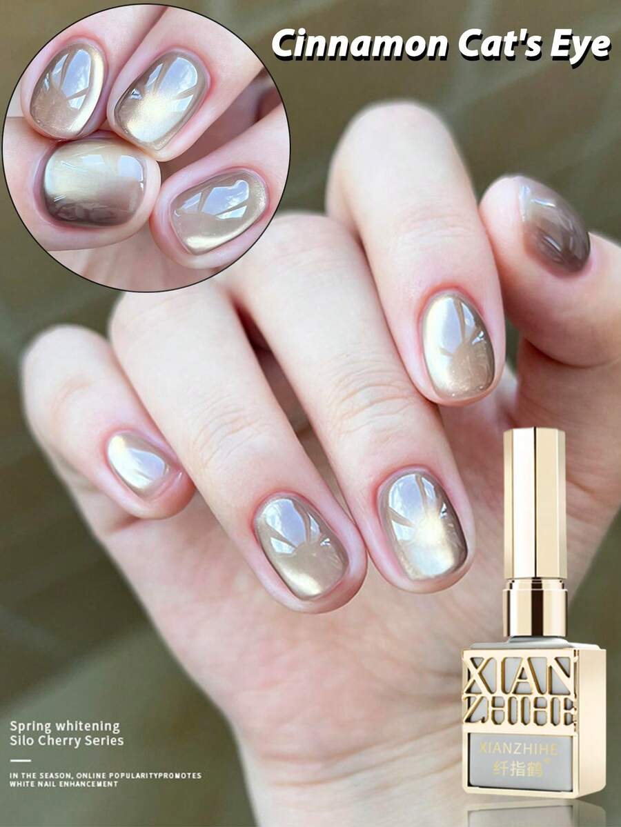 XIANZHIHE 1pc/3PCS 15ML 闪亮水晶透明玻璃珠猫眼指甲油凝胶,2026 新款,流行瓷白色水晶猫眼指甲油。