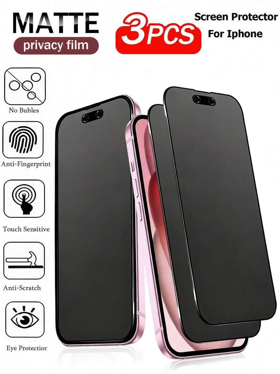 XINHONGYU 3片装磨砂防窥屏保护膜,兼容 17 Pro Max/17 Pro/17 Air/17/16 Pro Max/16 Pro/15 Pro Max/15 Pro/14/13/12/11 - 防指纹、无气泡、易贴、磨砂防窥软膜、隐私屏幕保护 | 磨砂表面 | 防指纹涂层