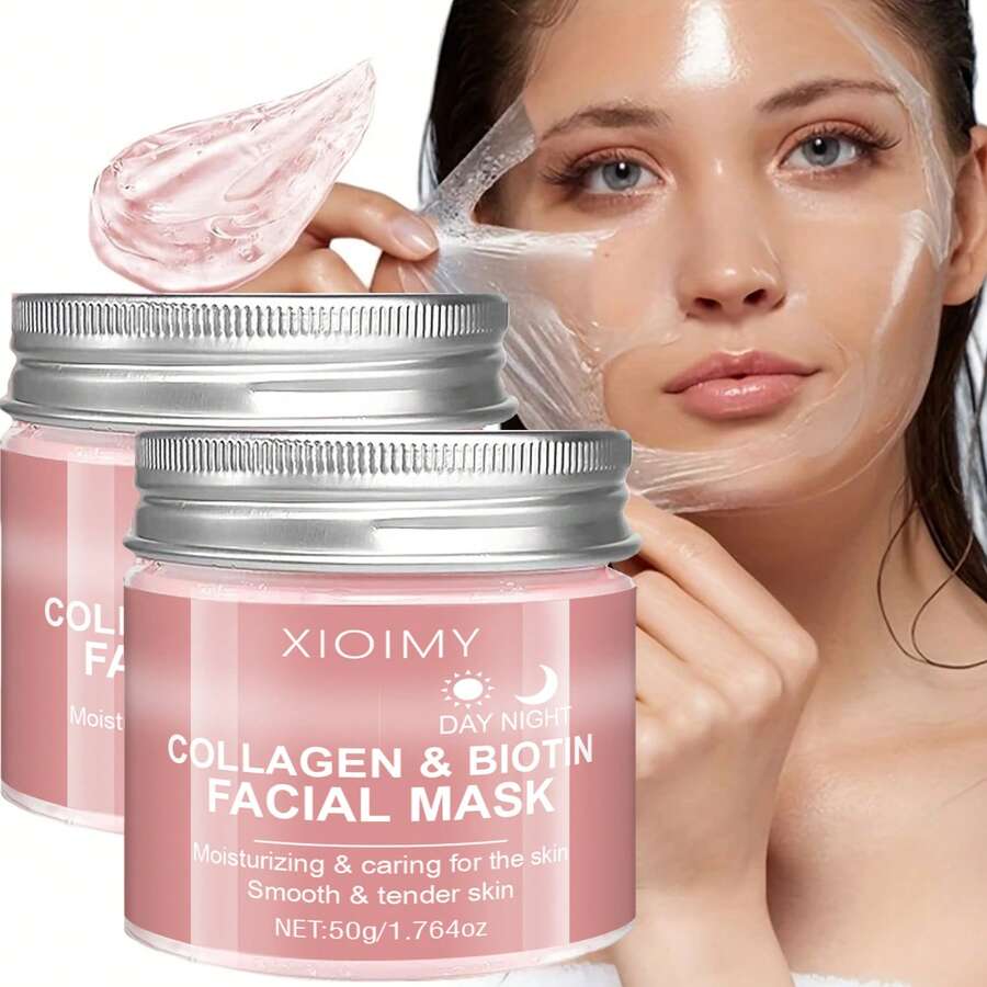 • XIOIMY 买一送一胶原蛋白和生物素面膜 - 无酒精,深层补水,增强皮肤弹性,提亮肤色,增强皮肤光泽,胶原蛋白面膜