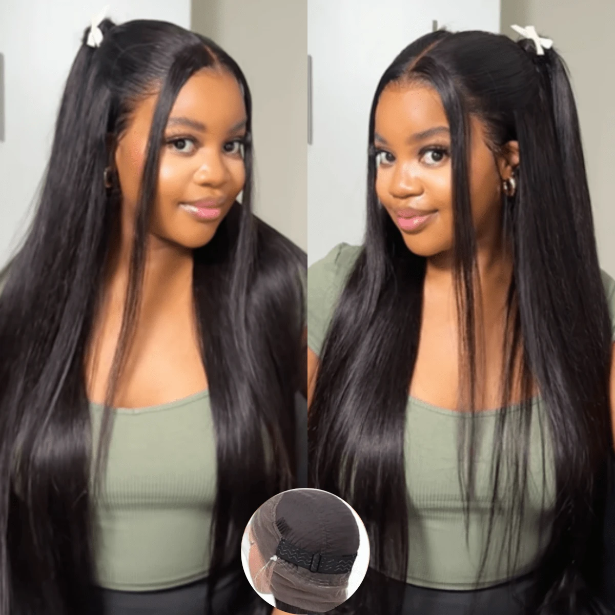 ZHENDEFA 隐形绑带360°仿真肌肤高清透明蕾丝前额假发,200密度直发蕾丝前额假发,隐形绑带预拔毛抽绳360°无胶假发,真人发,女士适用