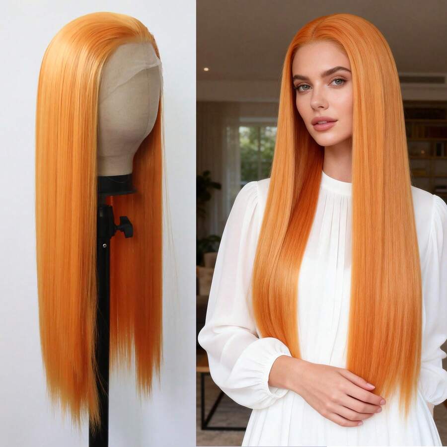 • ZigZag Hair 橙色、灰色、蜜金色、棕色、红棕色长直无刘海合成假发,耐热纤维材质,适合日常和角色扮演造型 - 彩色 - 查看 2