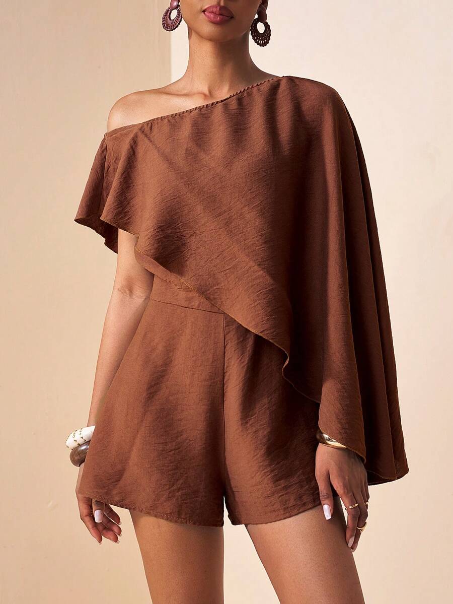 • Zivah 2026春夏新款音乐节、复活节、圣帕特里克节、情人节、约会、西部风、游牧风、生日派对、毕业典礼、大学、学生、日常休闲、百搭基础款、休闲、度假、邮轮旅行、海滩、日光浴、热门款、街头风、婚礼宾客波西米亚风、通勤、早午餐、机场、派对、假日郊游、办公装、不对称肩部飘逸连体裤、亚麻棕色连体裤 - 棕色 - 查看 2