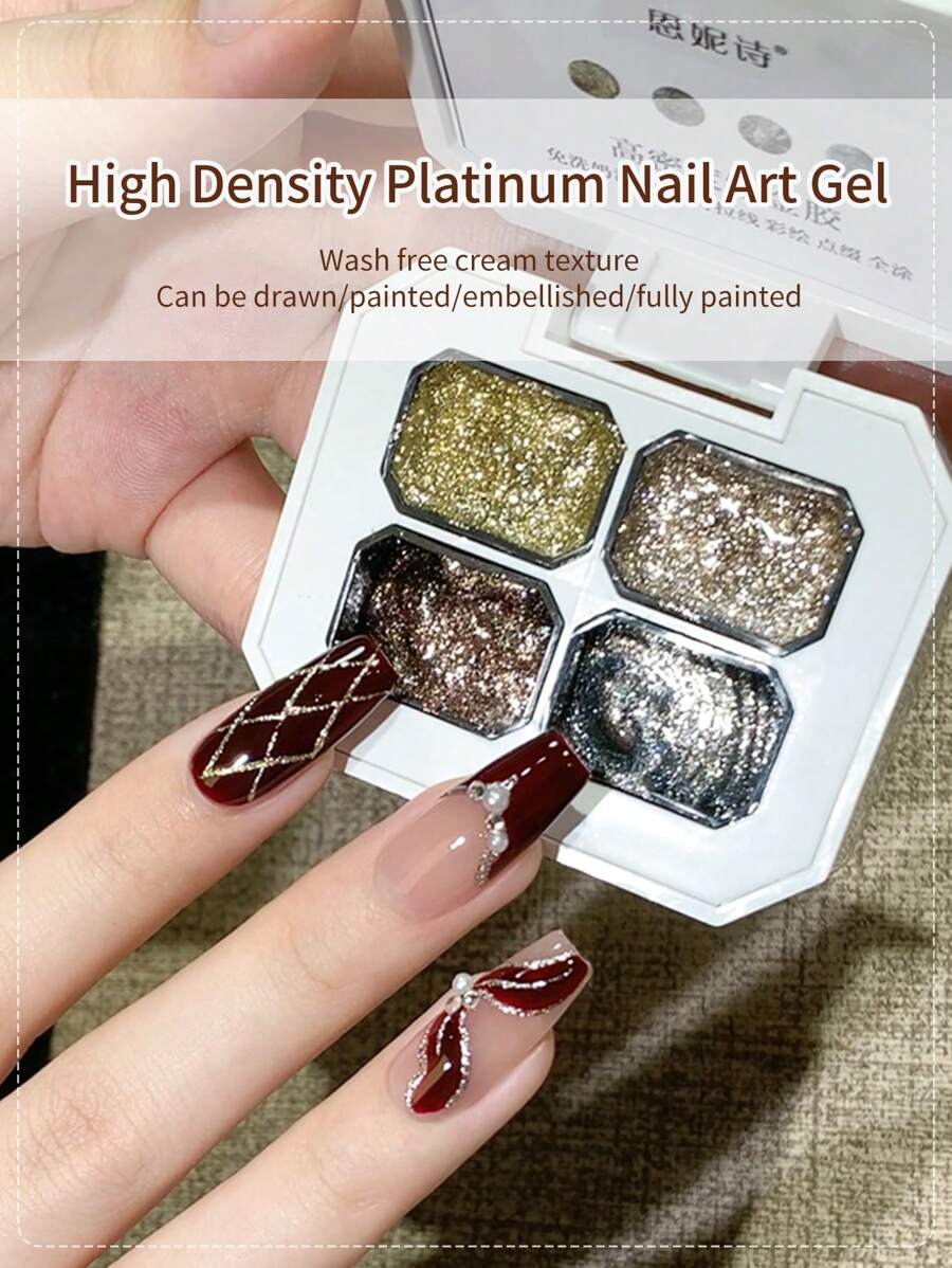 annies 四宫格金属凝胶线美甲银色青铜金色镜面铬色3D效果凝胶指甲油金属彩绘