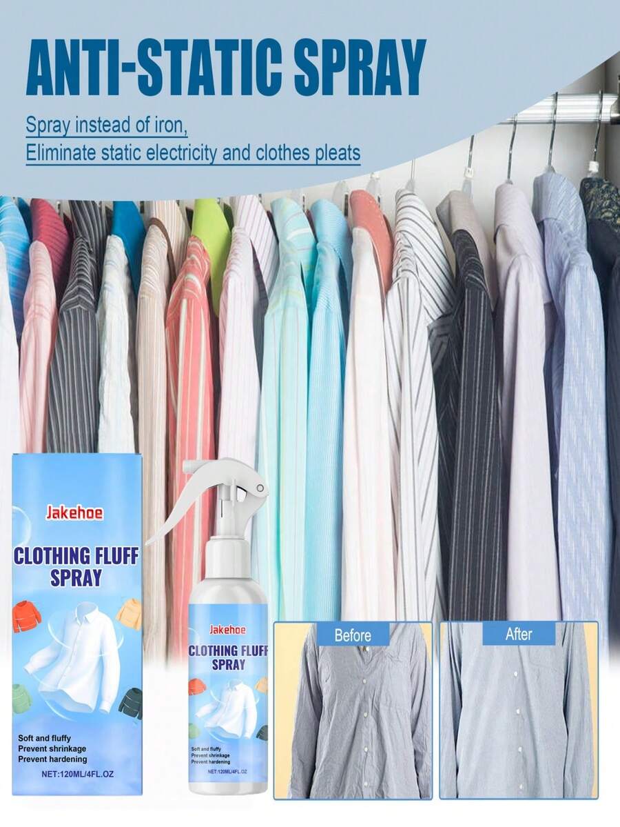 jakehoe 除皱防静电喷雾,适用于家居衣物、床上用品、羽绒服,舒适亲肤,无需熨烫即可去除褶皱,不粘腻柔顺护理剂