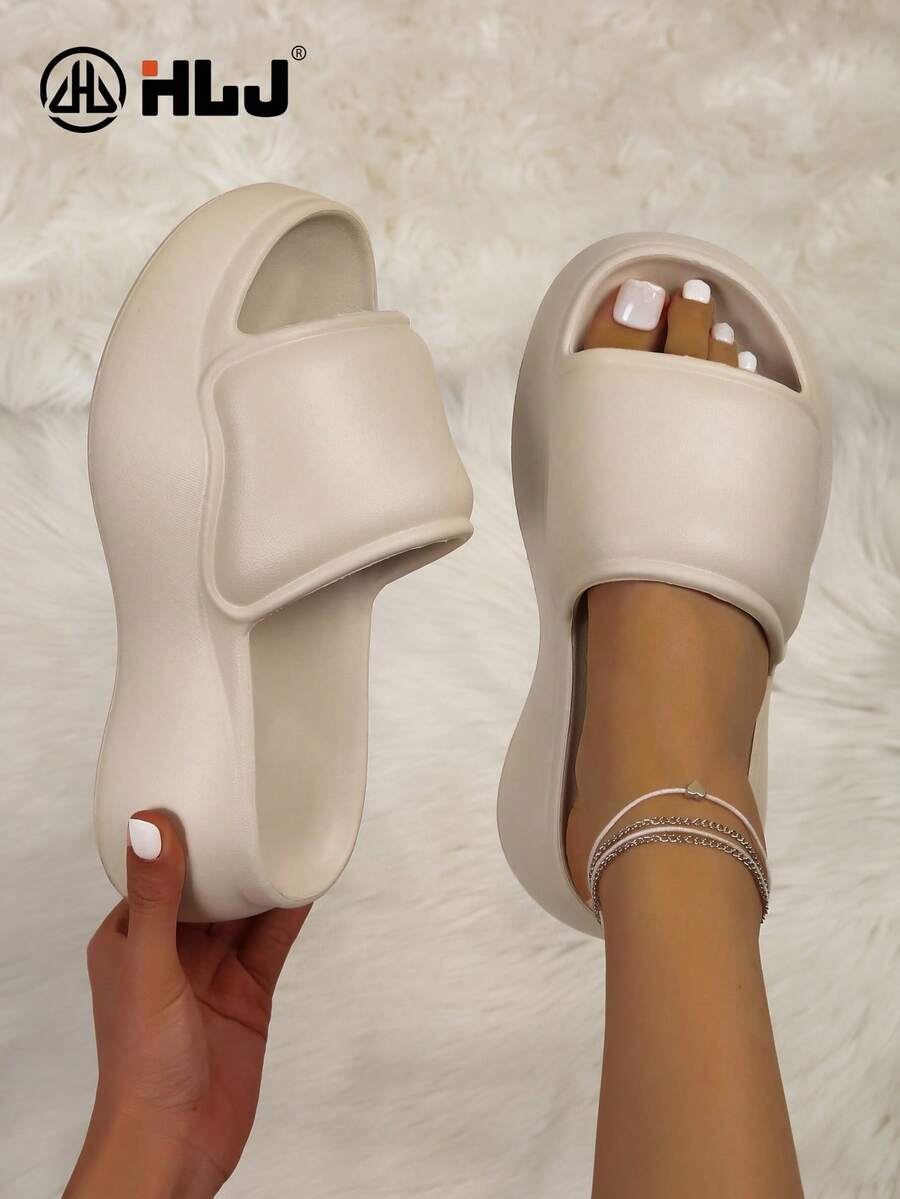 luofu 新款夏季女士休闲简约厚底纯色凉鞋,时尚户外沙滩派对高跟拖鞋