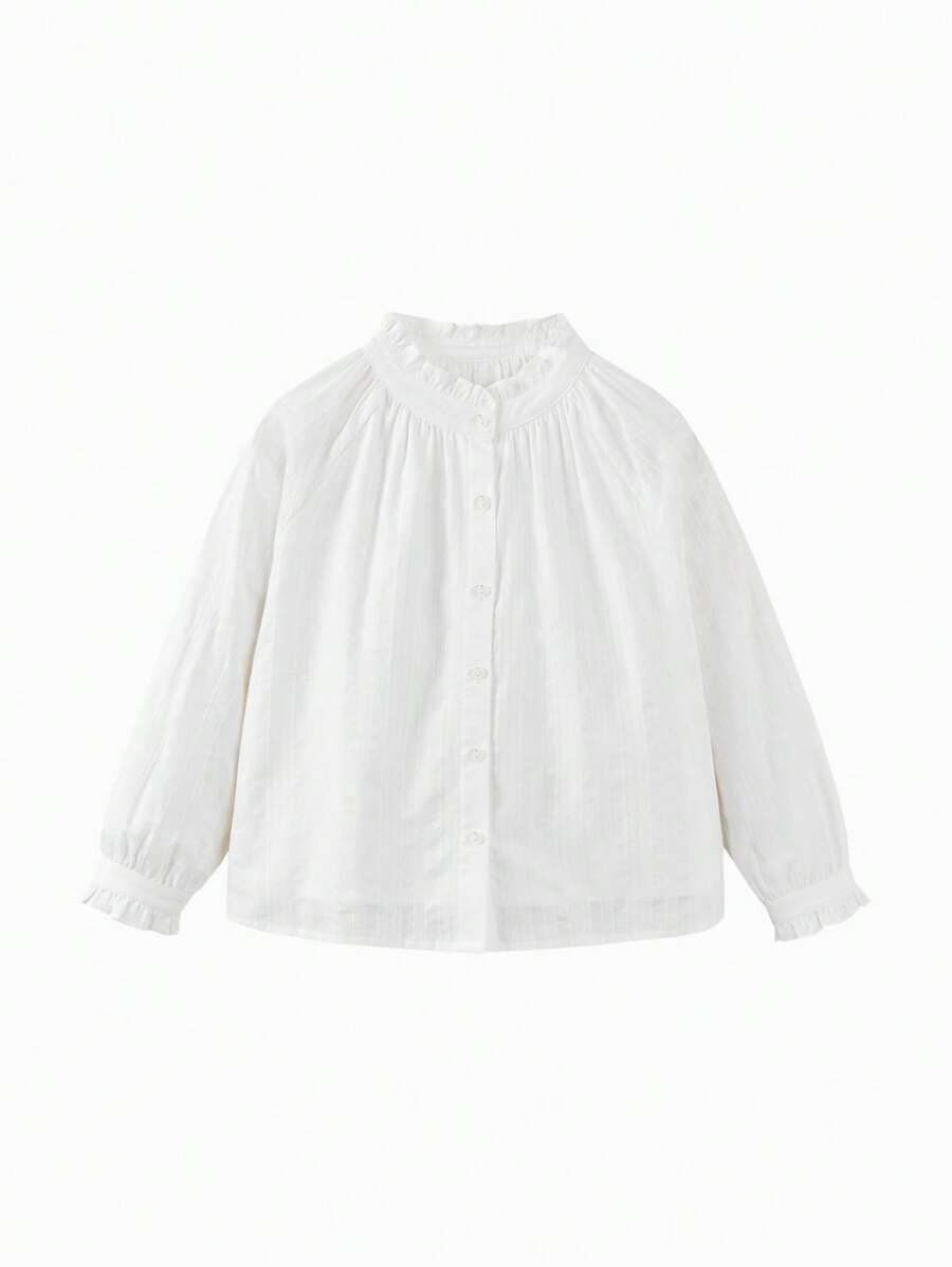 mini bala 2025秋季甜美女童荷叶边领长袖衬衫