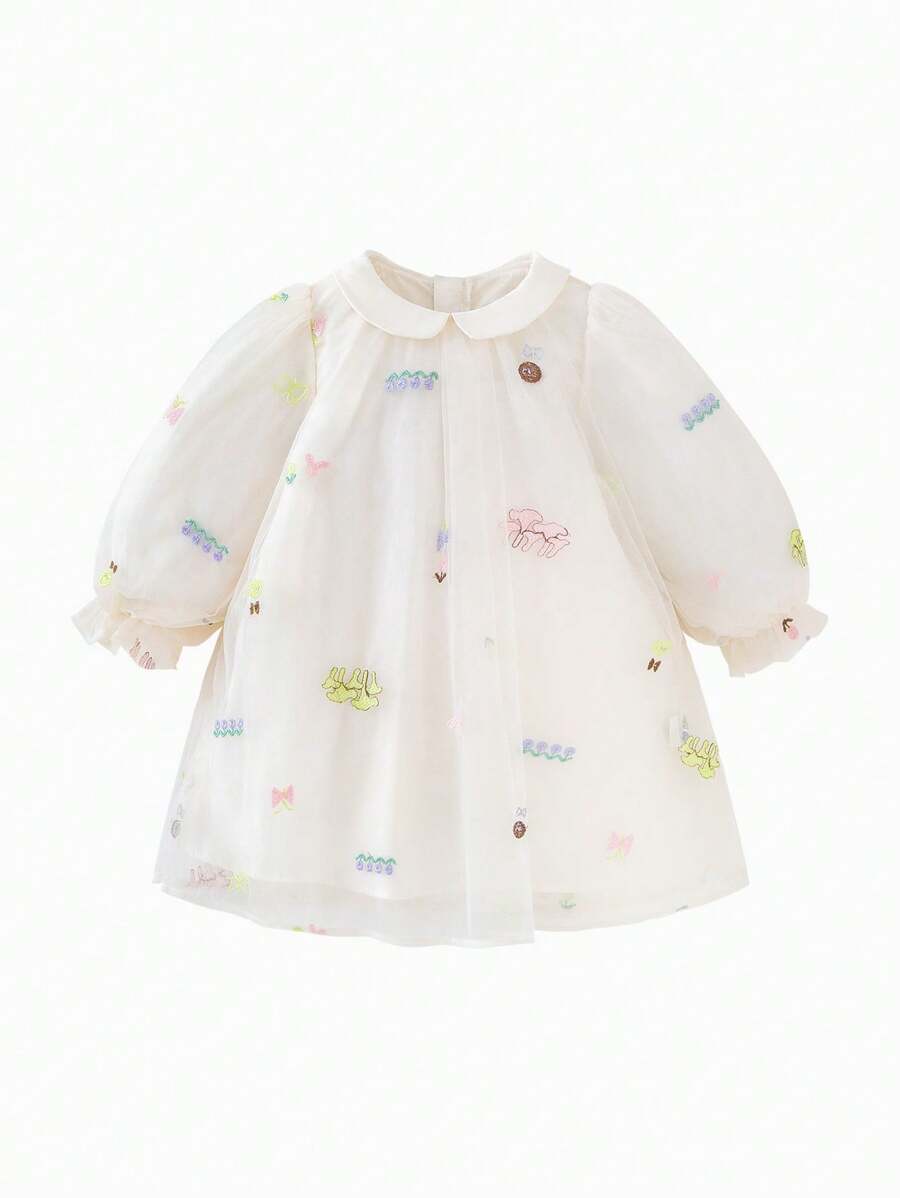 mini bala 女童刺绣网纱派对连衣裙,甜美彼得潘领