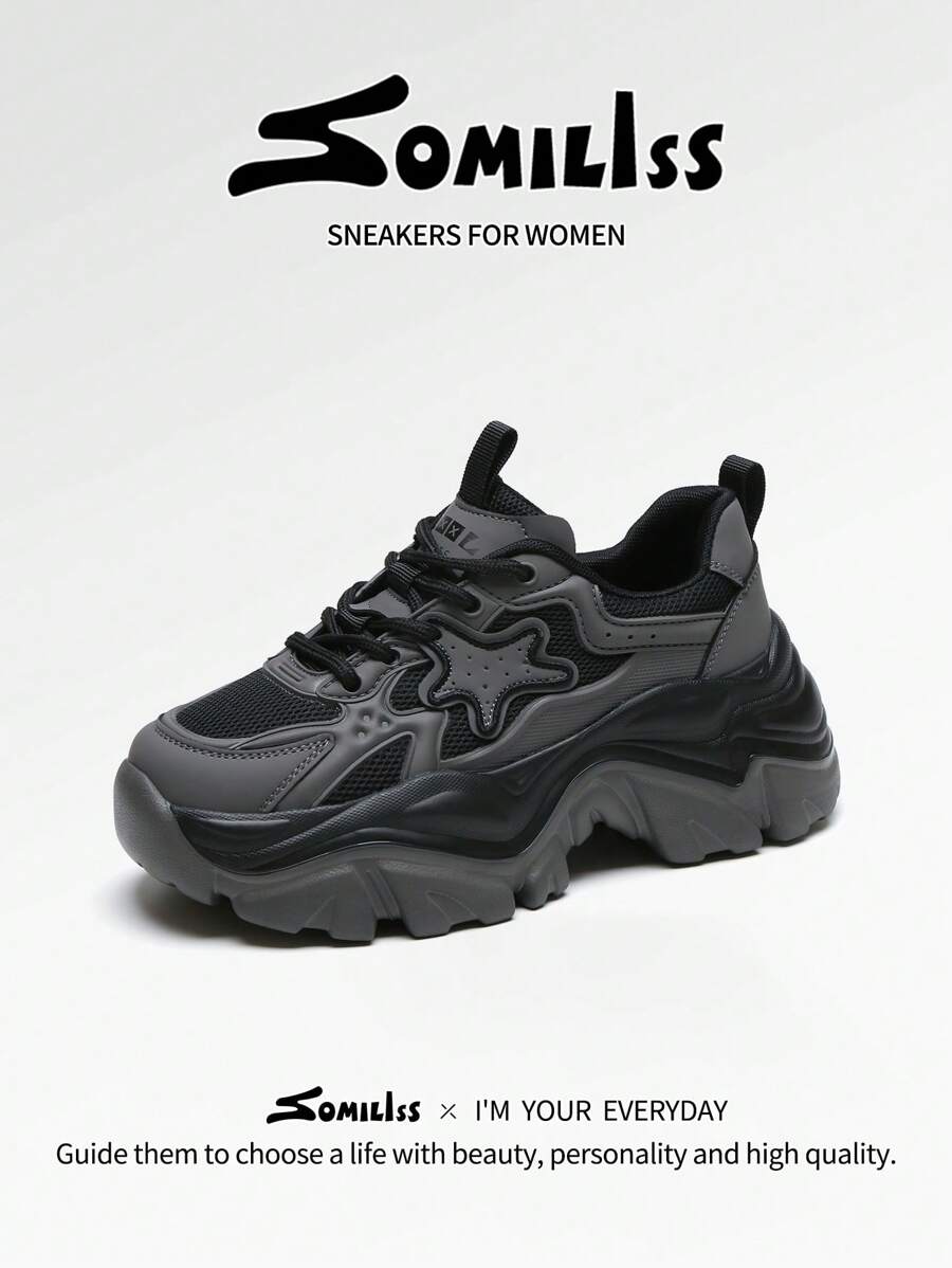 somiliss 新款秋季运动款防滑女士休闲运动鞋,系带前部,绒面皮革和网眼鞋面,舒适的学生绿色跑步鞋,2.75 英寸厚底,轻便多功能户外步行鞋